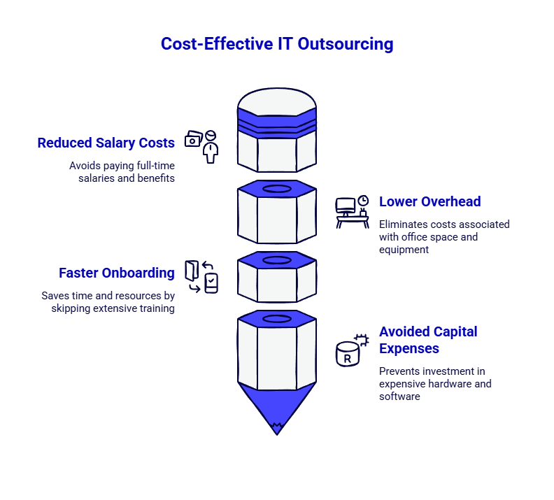 That’s where IT project outsourcing becomes a total game changer. Instead of spending months (and a ton of money) on recruitment, onboarding, and training, you can plug right into a global pool of experienced professionals who already know what they’re doing. And here’s the beauty of it: